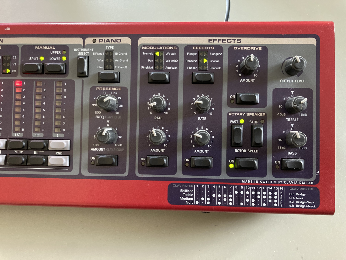 • sons de Hammond (avec tirettes harmoniques « à LEDs » et de Rhodes de toute beauté (surtout en écoute stéréo. Sons de piano… utilisables (mais ils ont fait beaucoup mieux depuis)